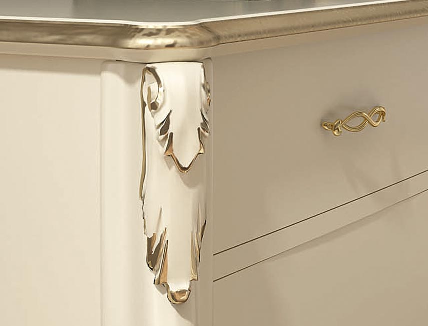 Nelle versioni con dettagli foglia oro o argento, le spalle sono arricchite da fregi stilizzati