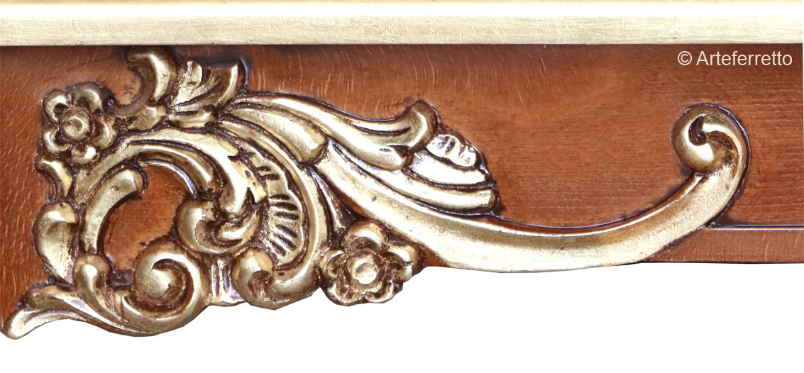 Il piano di notevole spessore è in massello listellato con fascia esterna in massello di tiglio lavorato con una sagoma dolcemente stilizzata.