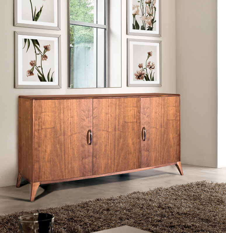 Solida credenza che, grazie alla naturale bellezza del legno noce canaletto, assume la connotazione di un mobile dalla linea pulita, che si fa apprezzare per la sua essenzialità.
