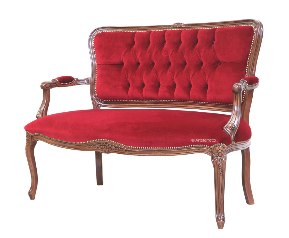 Divanetto dalla piacevole forma classica, costituito da una intelaiatura di notevole spessore che ne garantisce solidità e stabilità.