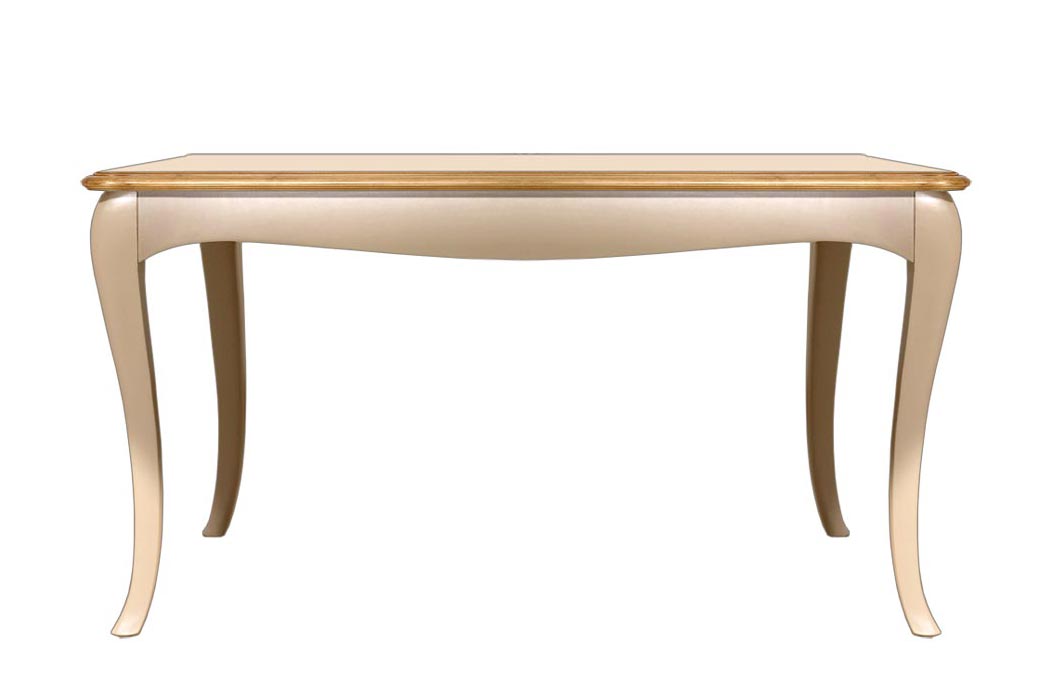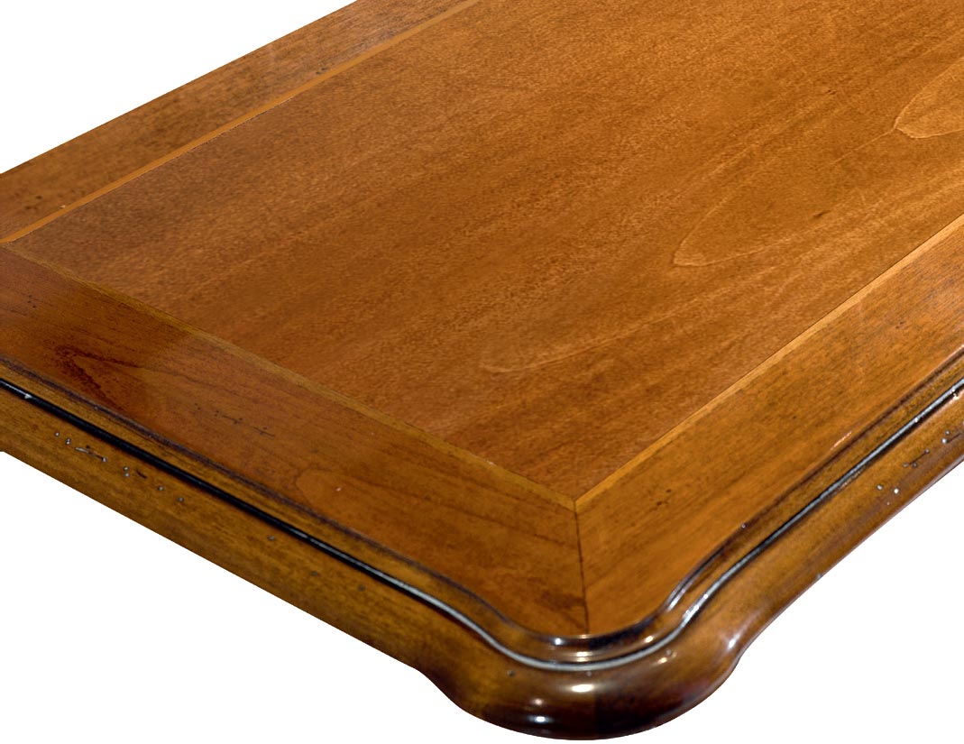 Il piano, grazie ad un gioco di venature del legno e un intarsio di grande eleganza, si esalta nella bella lucidatura che trasmette tutto il calore del legno naturale. Il piano di questo tavolo rettangolare è fisso.