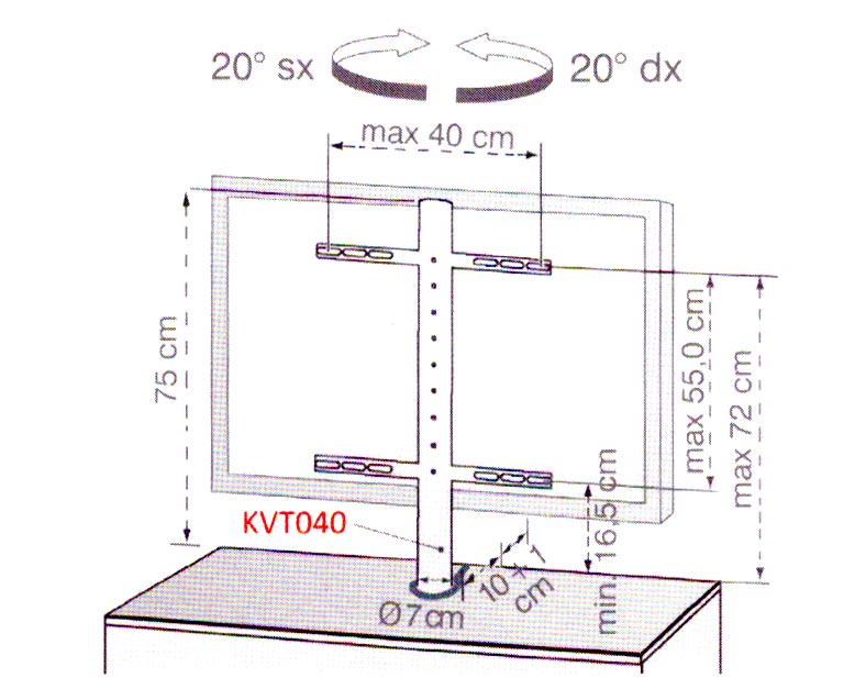 Colonna orientabile con rotazione 20 + 20 gradi,