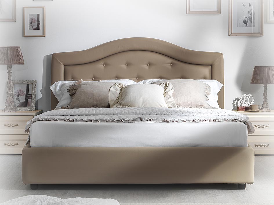 Per unire la comodità alla bellezza, una soffice imbottitura in ecopelle, facilmente lavabile e molto resistente, arricchisce la testiera e rende il letto un perfetto connubio tra classico e modero, praticità ed eleganza, risparmio e qualità.