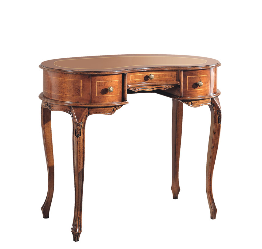 Tre cassetti che seguono la sagoma dello scrittoio donano maggiore utilità e funzionalità all'intera composizione.