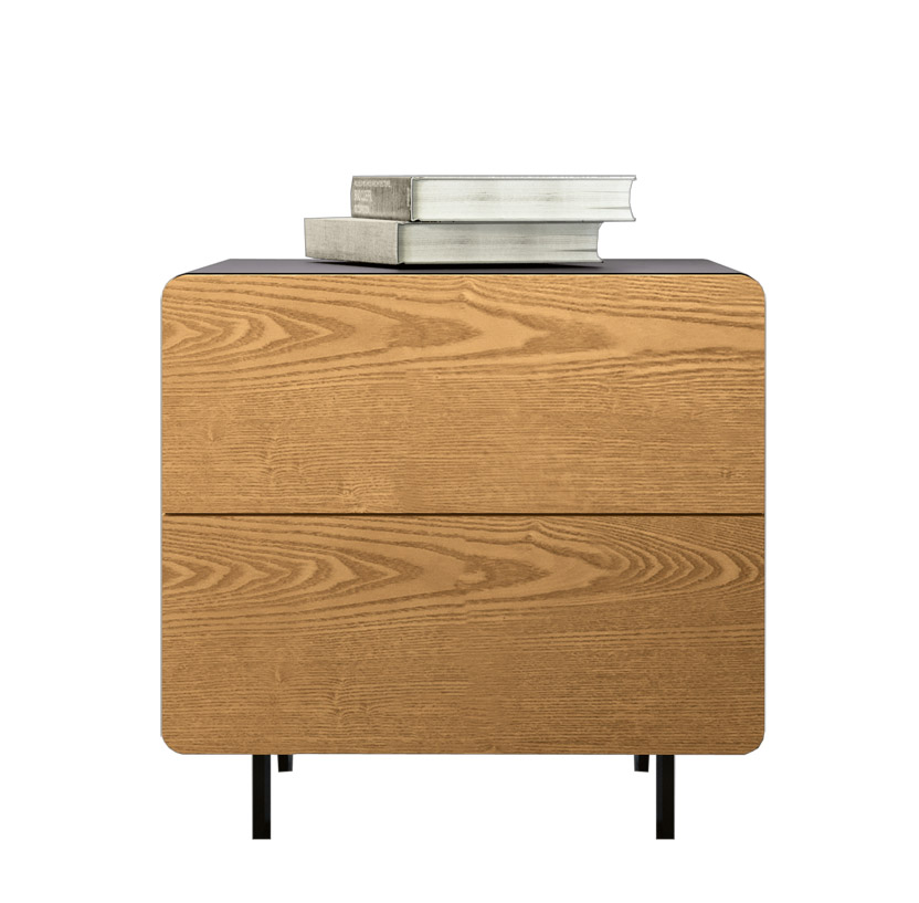 I due spaziosi cassetti hanno un frontale in legno di frassino con apertura push and pull.