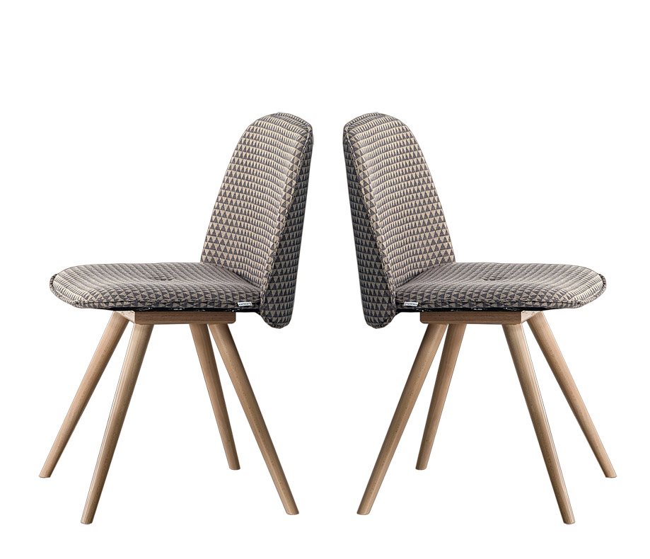 Coppia di sedie imbottite dallo stile moderno e contemporaneo.