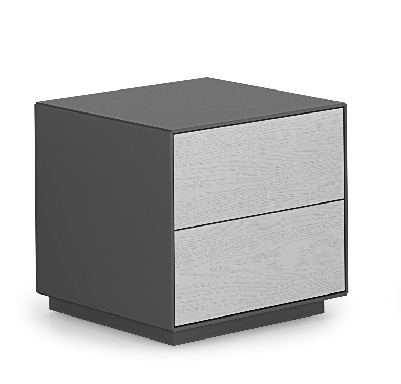 Composto da un comò con 4 cassetti e due comodini dotati di 2 cassetti ciascuno.