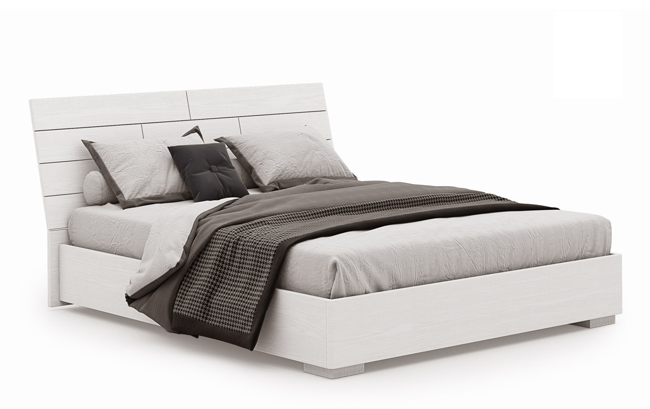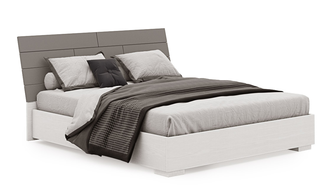 Realizzato in nobilitato in finitura frassino gesso o bicolore con inserti in girgio scuro, la testiera presenta un motivo a fasce.