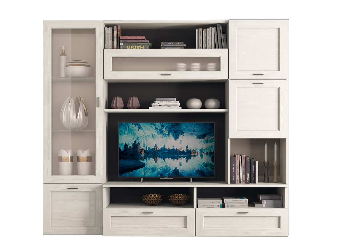 I diversi vani si alternano tra sportelli con apertura/chiusura ammortizzata e spazi a giorno che permettono di tenere in ordine i vostri oggetti e soprammobili più preziosi.