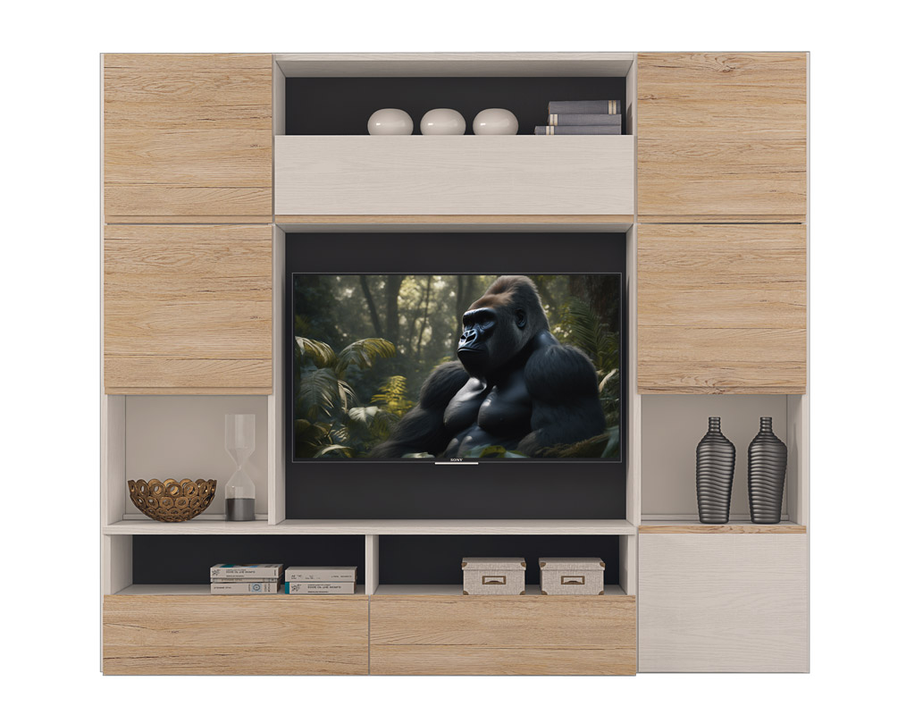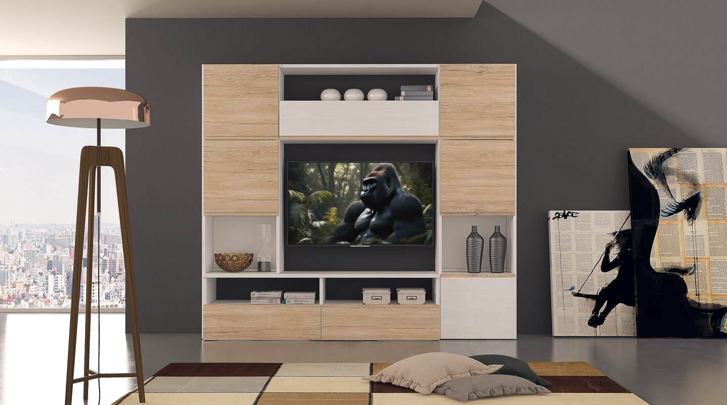 La soluzione ideale ed estremamente accattivante dove riporre libri, soprammobili, spazio per schermo TV e contemporaneamente custodire in ordine ciò che non si vuole lasciare in giro per casa.