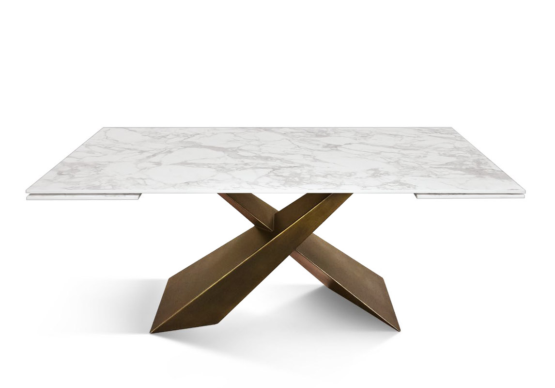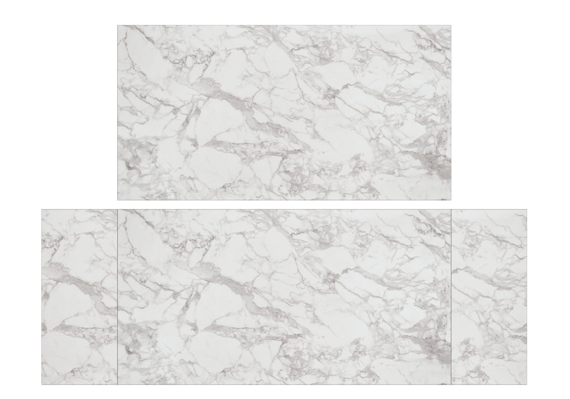 Il suo piano è realizzato in ceramica con finitura marmo bianco ed è dotato di due allunghe laterali da 40 cm ciascuna. Invitare a cena il vostri ospiti non sarà dunque un problema!