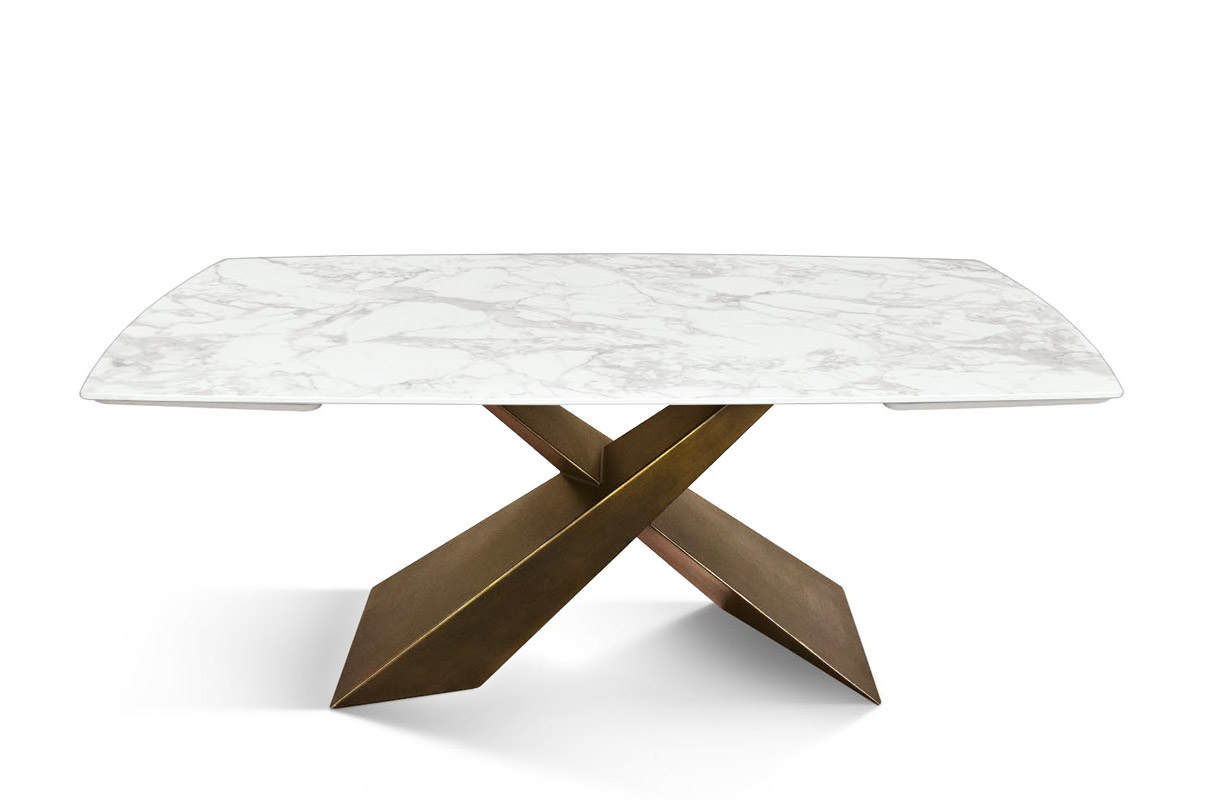 Tavolo con piano a botte, dal design moderno ed innovativo.