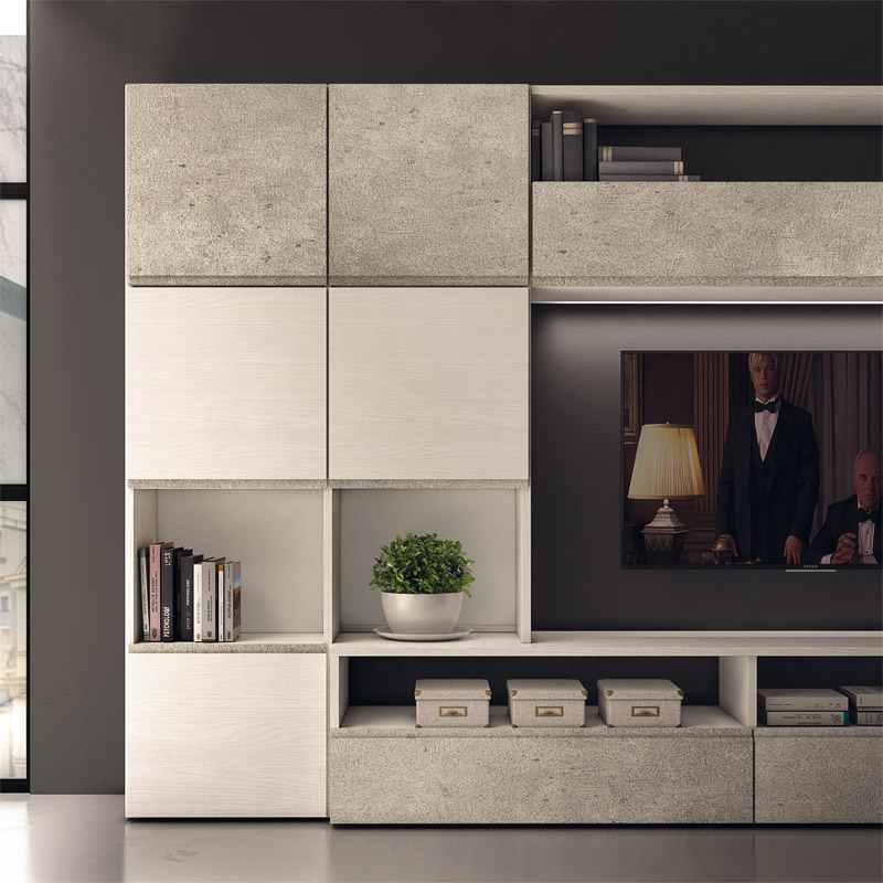 Semplice ma di grande effetto, questa parete equipaggiata conquisterà voi e i vostri ospiti per la sua eleganza e funzionalità.