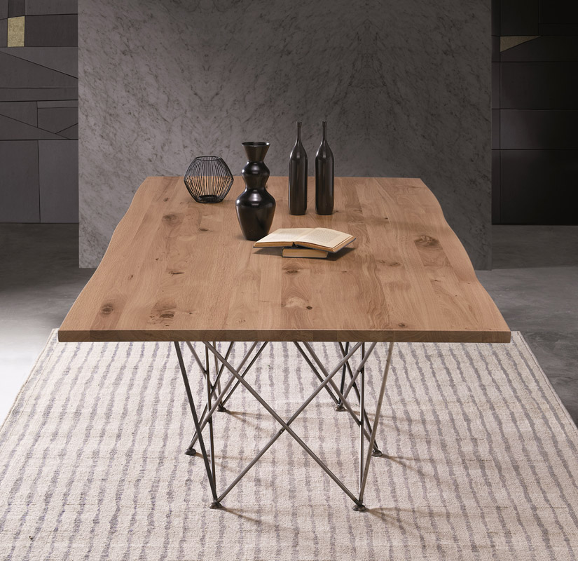 Tavolo rettangolare dallo stile moderno ma allo stesso tempo rustico.