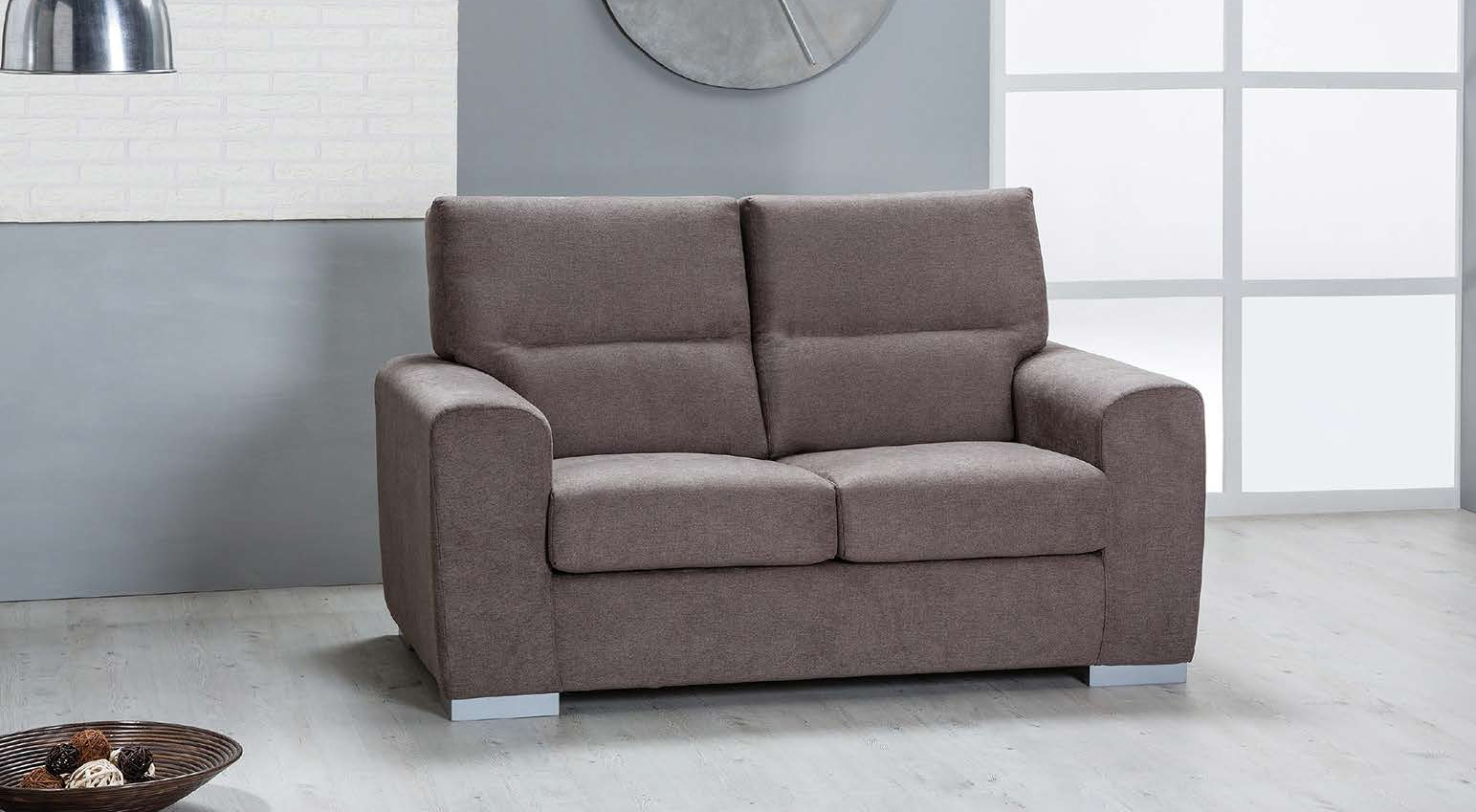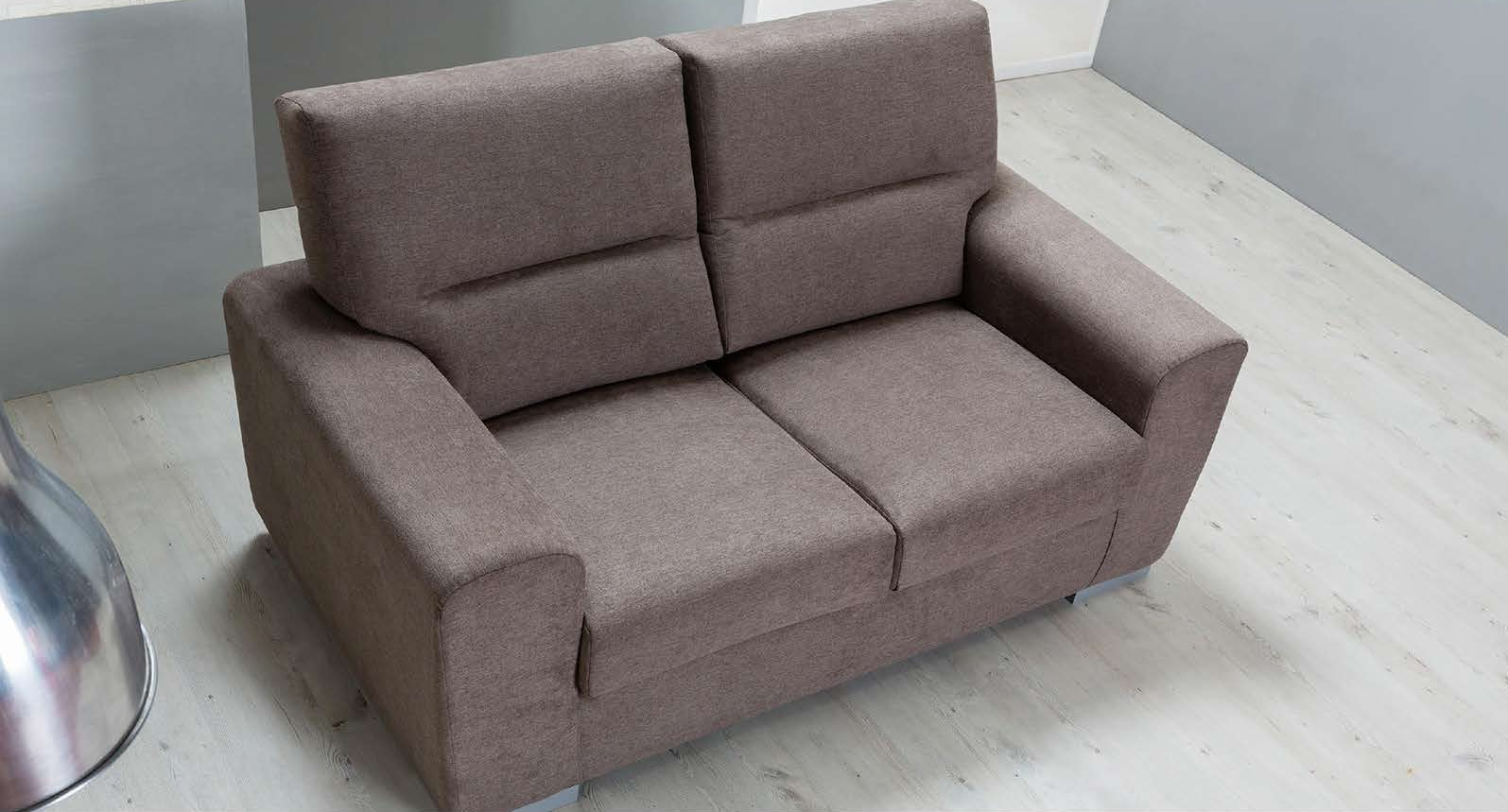 Comodo divano in una calda tonalità di marrone chiaro dalla linea arrotondata per una soluzione armoniosa e delicata per il soggiorno.
