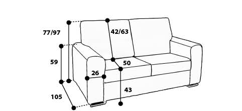 Divano 3 posti con cuscini dello schienale regolabili in altezza.