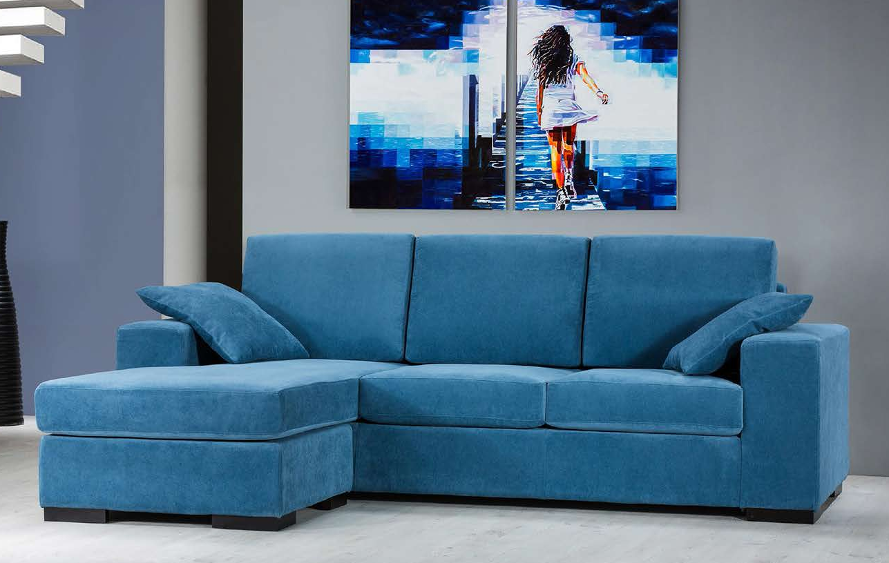 Comodissimo divano molto pratico e spazioso dall'originale colore azzurro/blu per dare un tocco particolare e di classe all'ambiente nel quale viene collocato.