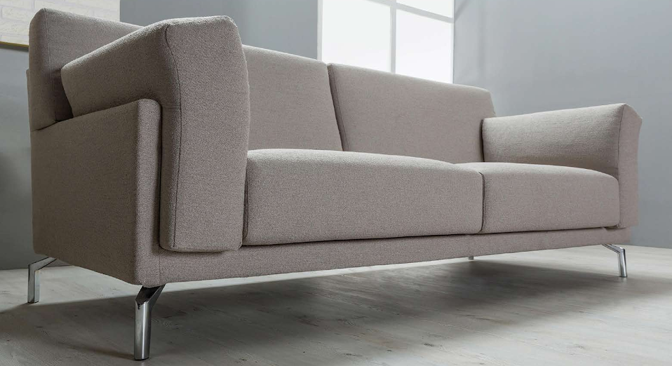 Divano sfoderabile con struttura in legno e sospensioni interne a cinghie elastiche ad alta resistenza. Seduta e schienali in poliuretano espanso ad alta densità per un comfort duraturo. Rivestito in tessuto structura, idrorepellente, composto al 65% da cotone e al 35% da poliestere, lavabile a mano. Linee pulite e fresche, piedini in metallo che danno un tocco di raffinatezza.