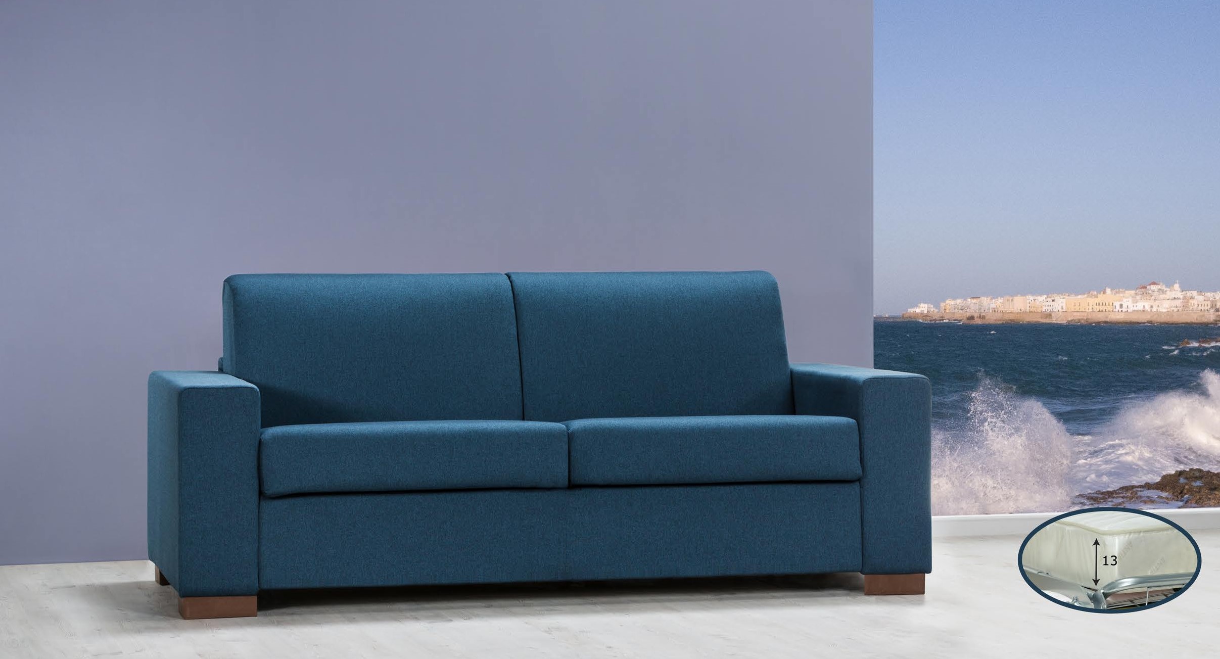 Divano 3 posti sfoderabile con struttura in legno resistente e sospensioni interne a cinghie elastiche ad alta resistenza. Seduta e schienali in poliuretano espanso ad alta densità per un comfort ottimale. Include una rete elettrosaldata e un materasso espanso di dimensioni 140x190x7 cm. Dotato di cavità porta guanciali per una soluzione ancora più pratica. Comfort e funzionalità in un design elegante, perfetto per il tuo soggiorno o camera degli ospiti!