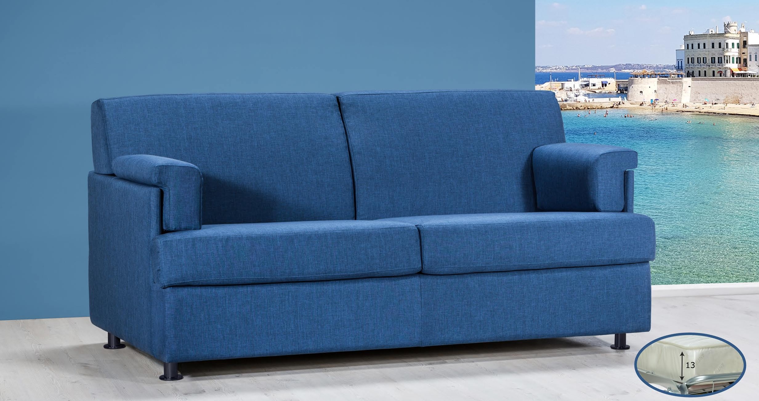 Un divano compatto e funzionale, ideale per spazi più piccoli senza rinunciare al comfort. La struttura in legno robusta, unita alle sospensioni interne con cinghie elastiche ad alta resistenza e all'imbottitura in poliuretano espanso ad alta densità, garantisce durata e comodità.