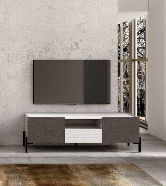 Eleganza e funzionalità si incontrano in questo raffinato porta TV. Con una struttura in Light Grey e frontali in Frassino Ghiaccio e Portland, aggiunge un tocco di stile contemporaneo al tuo living. Le due ante a ribalta, il cassetto spazioso e il vano aperto offrono tutto lo spazio di cui hai bisogno per organizzare dispositivi e accessori. Un complemento d’arredo che unisce design e praticità, perfetto per creare un ambiente accogliente e sofisticato.