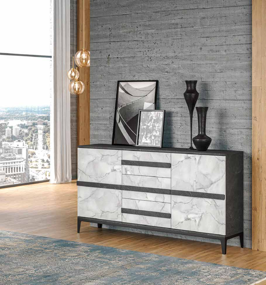 La madia a 2 ante e 3 cassetti è un connubio perfetto di design sofisticato e praticità. La struttura dark esalta l’eleganza dei frontali in finitura dark e marmo bianco, creando un contrasto raffinato e senza tempo. Un arredo che dona carattere e stile a ogni ambiente, offrendo ampio spazio contenitivo con un’estetica ricercata. Perfetta per chi ama il design contemporaneo e vuole impreziosire la propria zona giorno con un tocco esclusivo.
