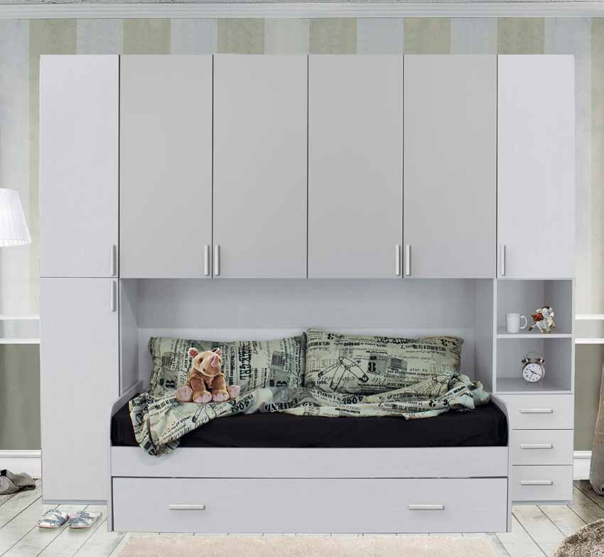 Crea uno spazio magico per i tuoi bambini con questa cameretta ponte, dove l'armonia dei colori si unisce alla praticità di un design intelligente. La struttura in bianco frassino offre una sensazione di calore e accoglienza, mentre i frontali di porte e cassetti in light grey e bianco frassino aggiungono un tocco di modernità.