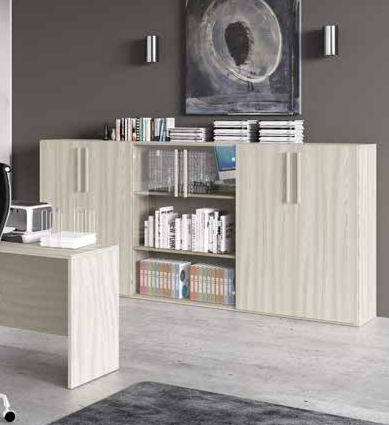 Pratica armadiatura a moduli con 6 ante, delle quali le due centrali a vetro. Stile minimal e linee pulite per un mobile da collocare in ufficio, zona studio, corridoio o in ogni ambiente dove si ha bisogno di sistemare le cose con ordine, dando però un tocco di design.