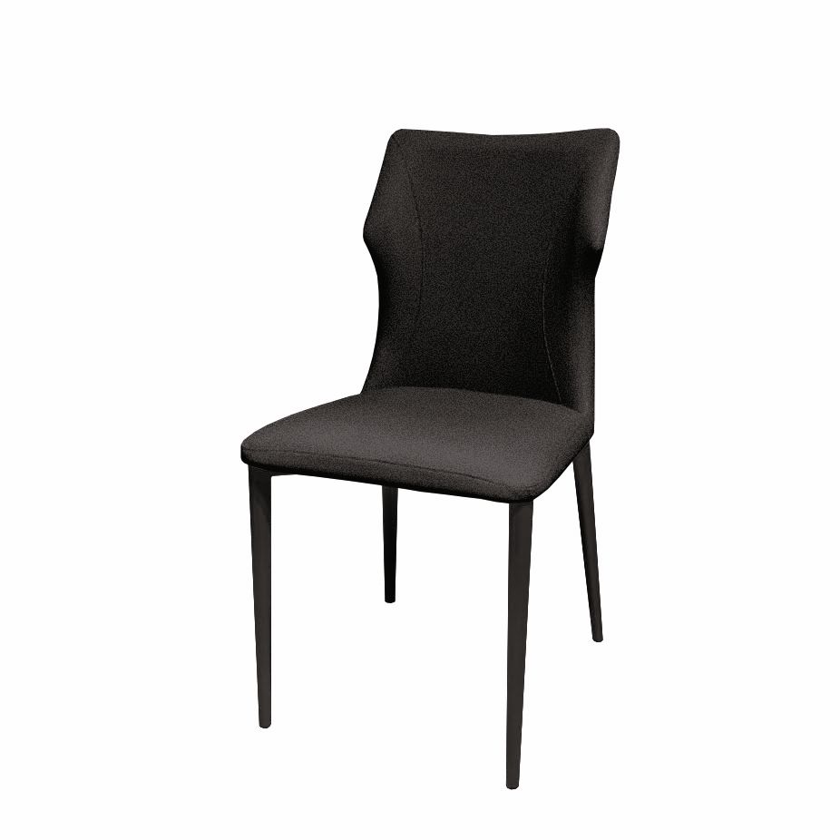 Originale sedia di design moderno rivestita di ecopelle color nero nella seduta e nello schienale. Solida struttura in ferro.