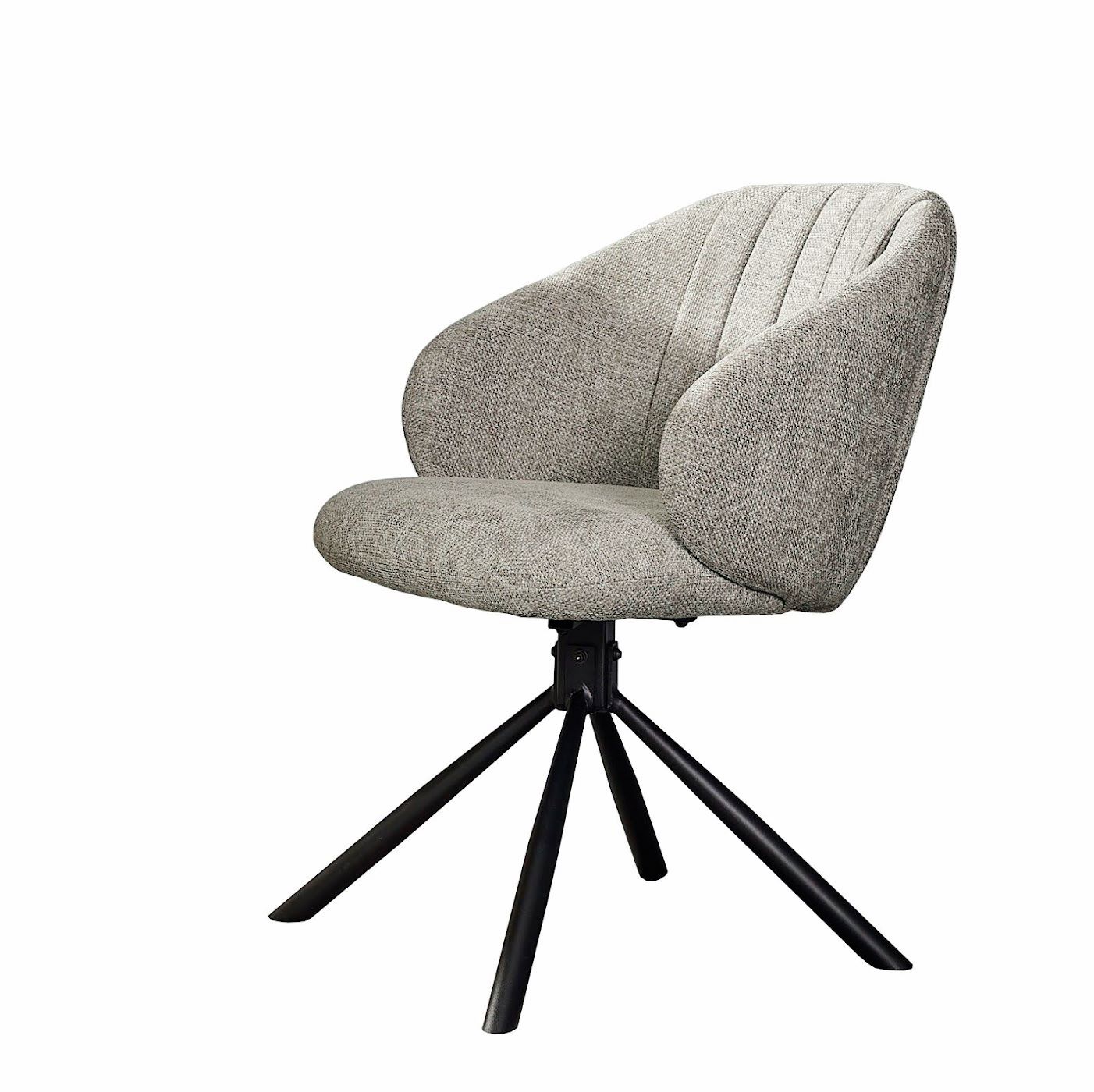 Bellissima poltroncina dalla solida struttura in ferro e comoda imbottitura di schienale e seduta in tessuto della tonalità del grigio con texture intrecciata.