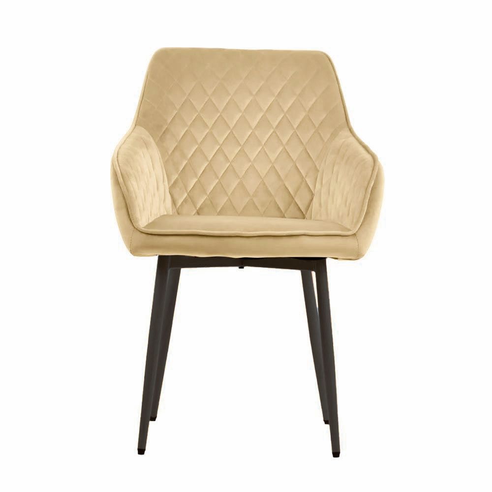 Una poltroncina, con facile funzione anche di sedia, dalla solida struttura in ferro e con seduta e schienale in morbido velluto trapuntato.