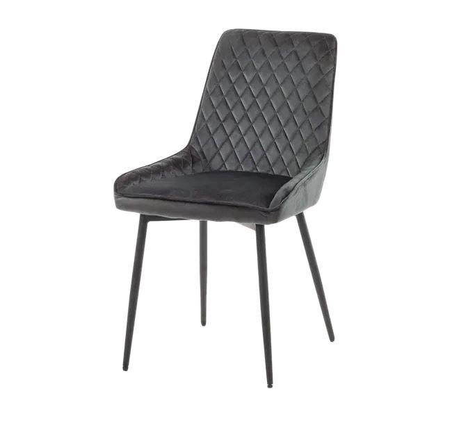 Sedia ergonomica di design, con solida struttura e gambe in ferro. Una piacevole e accogliente forma di seduta e schienale in velluto, ques'ultimo con effetto trapuntato, per creare un bel mix di originalità, comodità, eleganza e stile.