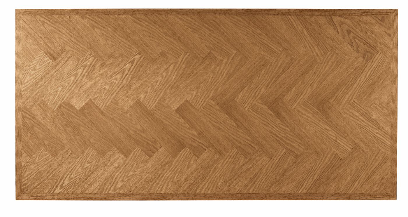Il piano, grazie ad un gioco di venature del legno e un intarsio di grande eleganza, si esalta nella bella lucidatura che trasmette tutto il calore del legno naturale. Il piano di questo tavolo rettangolare è fisso.