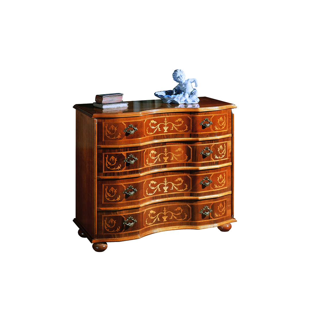 La capienza è garantita da 4 ampi cassetti, impreziositi da graziose maniglie finemente lavorate.