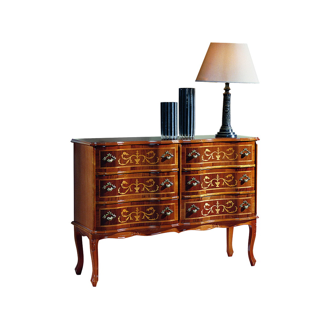 Nonostante l'impronta classica, il comò è perfettamente adattabile a contesti d'arredo contemporaneo.