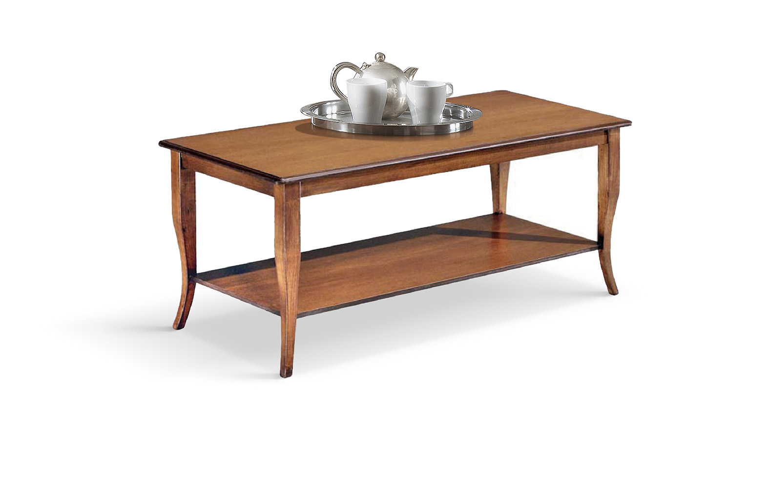 Tavolino rettangolare in stile classico che grazie al piano superiore e al ripiano inferiore offre grande spazio d'appoggio.