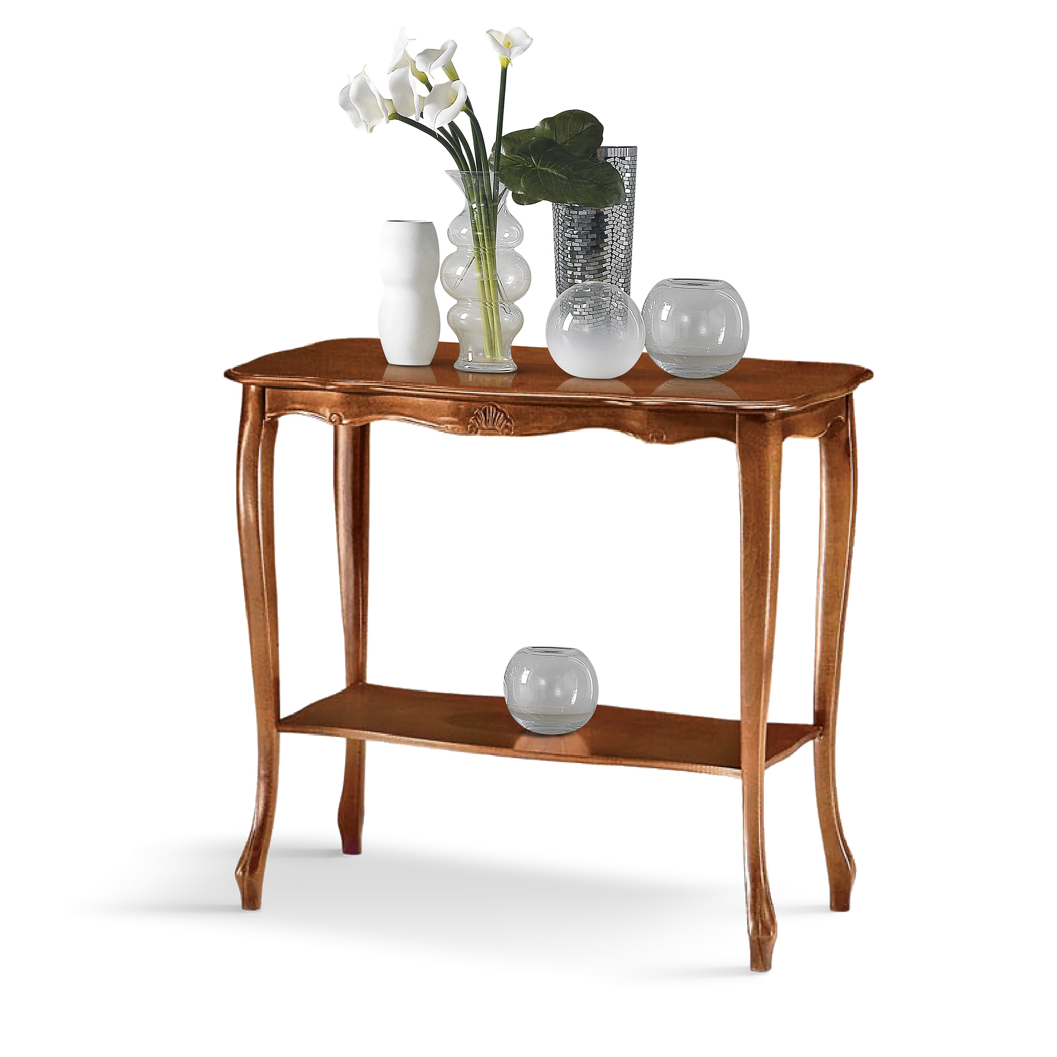 Bellissima consolle in stile classico di forma rettangolare, che offre spazio d'appoggio grazie al top superiore e al ripiano inferiore, e dona eleganza all'ambiente in cui viene collocata.