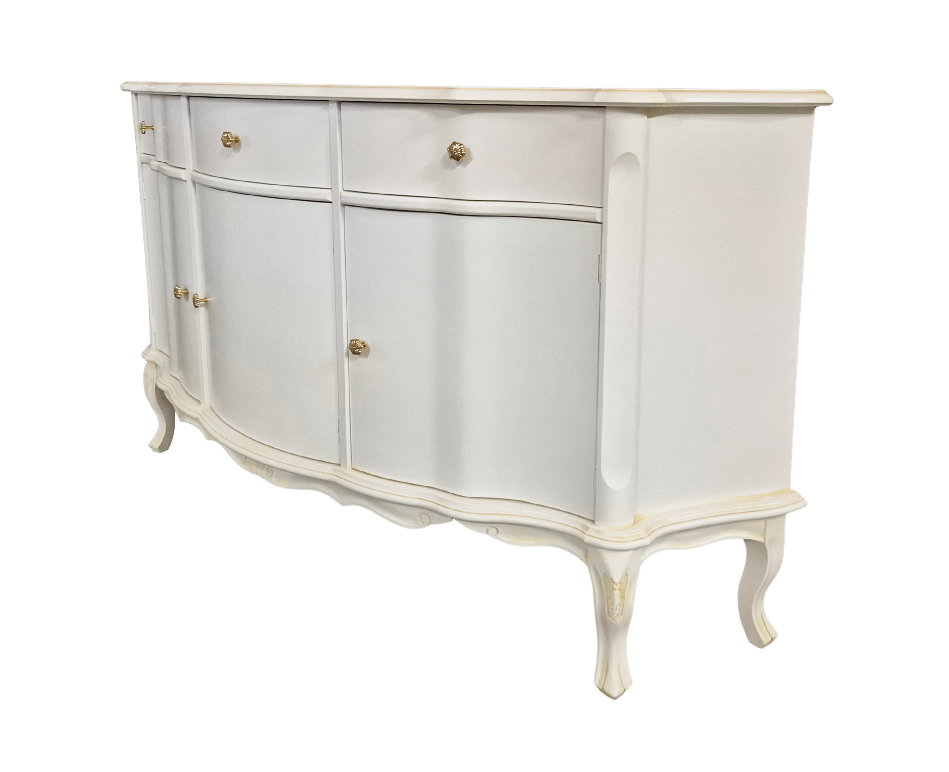 Splendida credenza con specchiera: composizione per un ambiente raffinato che, grazie a questo splendido elemento d'arredo, sarà valorizzato al massimo.La credenza modello MT-62 è decorata con foglia oro su raffinata laccatura bianca. In abbinamento, a rendere maestosa la composizione, la splendida specchiera dalla forma elegante e classica, anch'essa valorizzata nelle parti intagliate, dall'applicazione della foglia oro.L'espressione massima dello stile e della classicità è rappresentata al meglio da questa composizione credenza con specchiera. Il suo valore è decisamente elevato e soltanto la vendita diretta da noi attuata permette questo prezzo, introvabile altrove per un prodotto di tale qualità.Dimensione specchiera- Esterne H130 x L152 cm spessore 8 cm- Misura effettiva solo specchio cm 131 x h96Dimensioni credenza: - Totali L177 x P57,8 x H91,3 cm- Cassetto capacità cm L47 x P42 x H11,4 (L esterna cm 49,7)- Dimensioni ante esterne cm L49,3 x H60,2- Dimensioni anta centrale cm L49,7 x H44,5