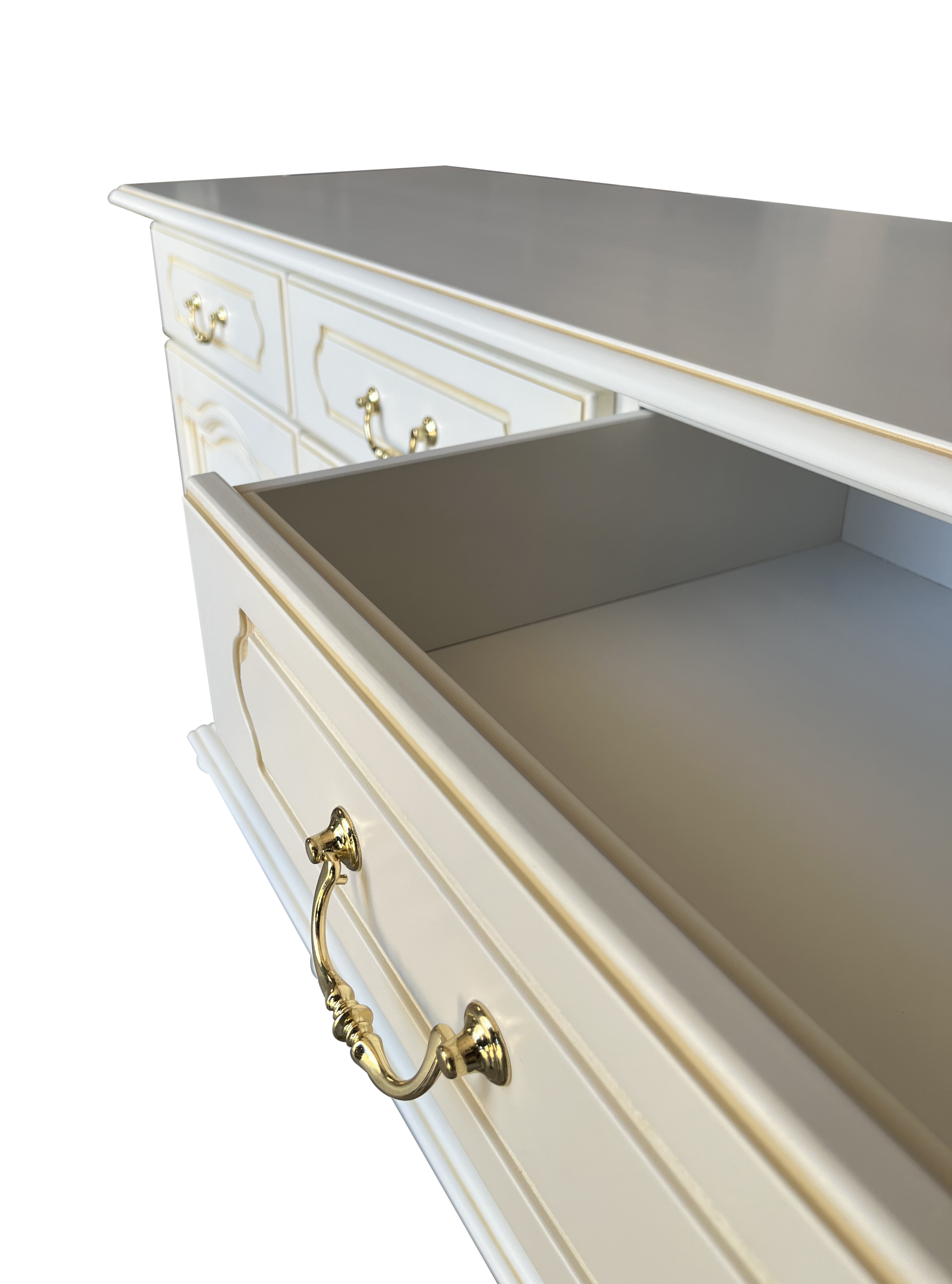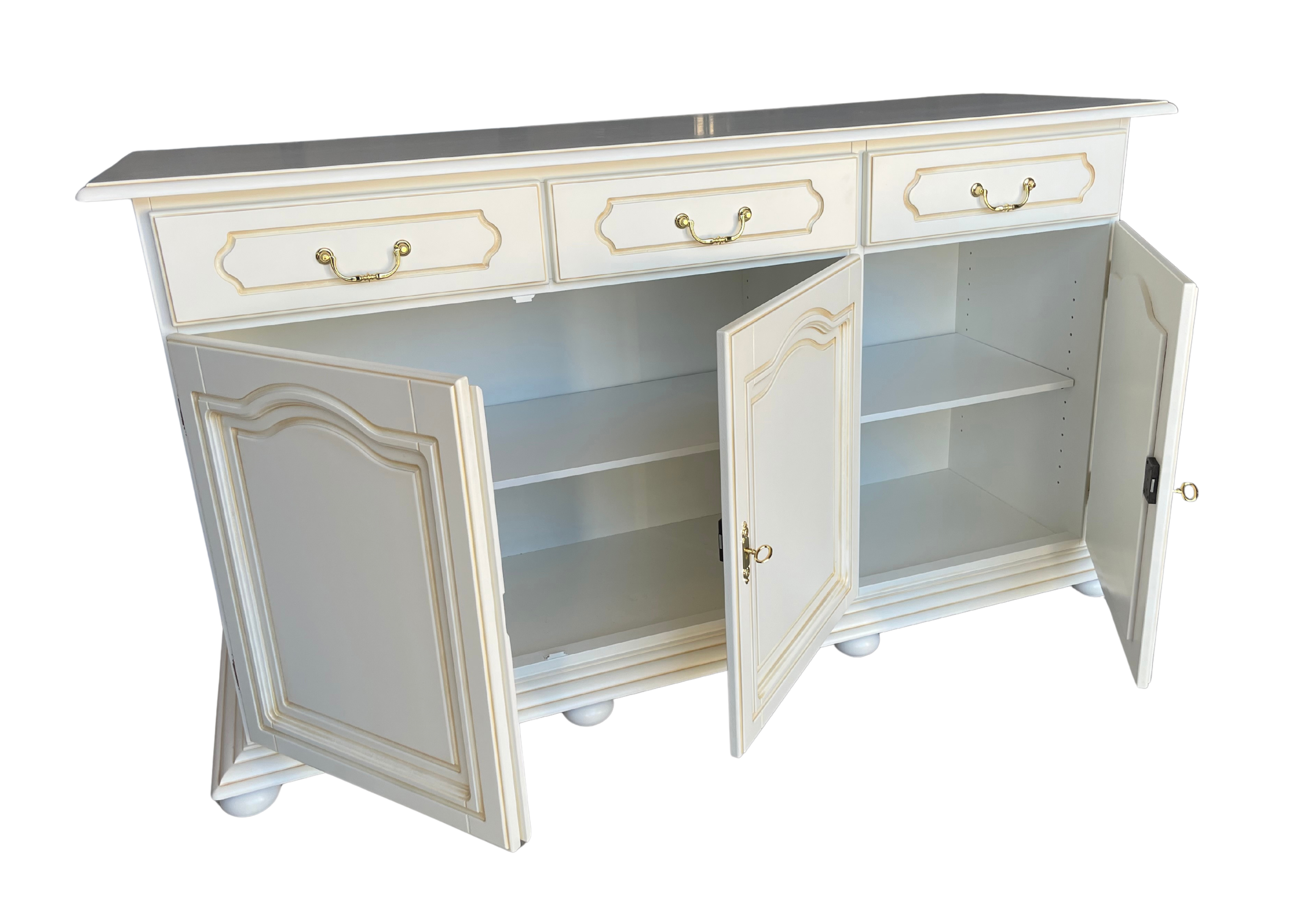 Splendida credenza con specchiera: composizione per un ambiente raffinato che, grazie a questo splendido elemento d'arredo, sarà valorizzato al massimo.La credenza modello MT-62 è decorata con foglia oro su raffinata laccatura bianca. In abbinamento, a rendere maestosa la composizione, la splendida specchiera dalla forma elegante e classica, anch'essa valorizzata nelle parti intagliate, dall'applicazione della foglia oro.L'espressione massima dello stile e della classicità è rappresentata al meglio da questa composizione credenza con specchiera. Il suo valore è decisamente elevato e soltanto la vendita diretta da noi attuata permette questo prezzo, introvabile altrove per un prodotto di tale qualità.Dimensione specchiera- Esterne H130 x L152 cm spessore 8 cm- Misura effettiva solo specchio cm 131 x h96Dimensioni credenza: - Totali L177 x P57,8 x H91,3 cm- Cassetto capacità cm L47 x P42 x H11,4 (L esterna cm 49,7)- Dimensioni ante esterne cm L49,3 x H60,2- Dimensioni anta centrale cm L49,7 x H44,5