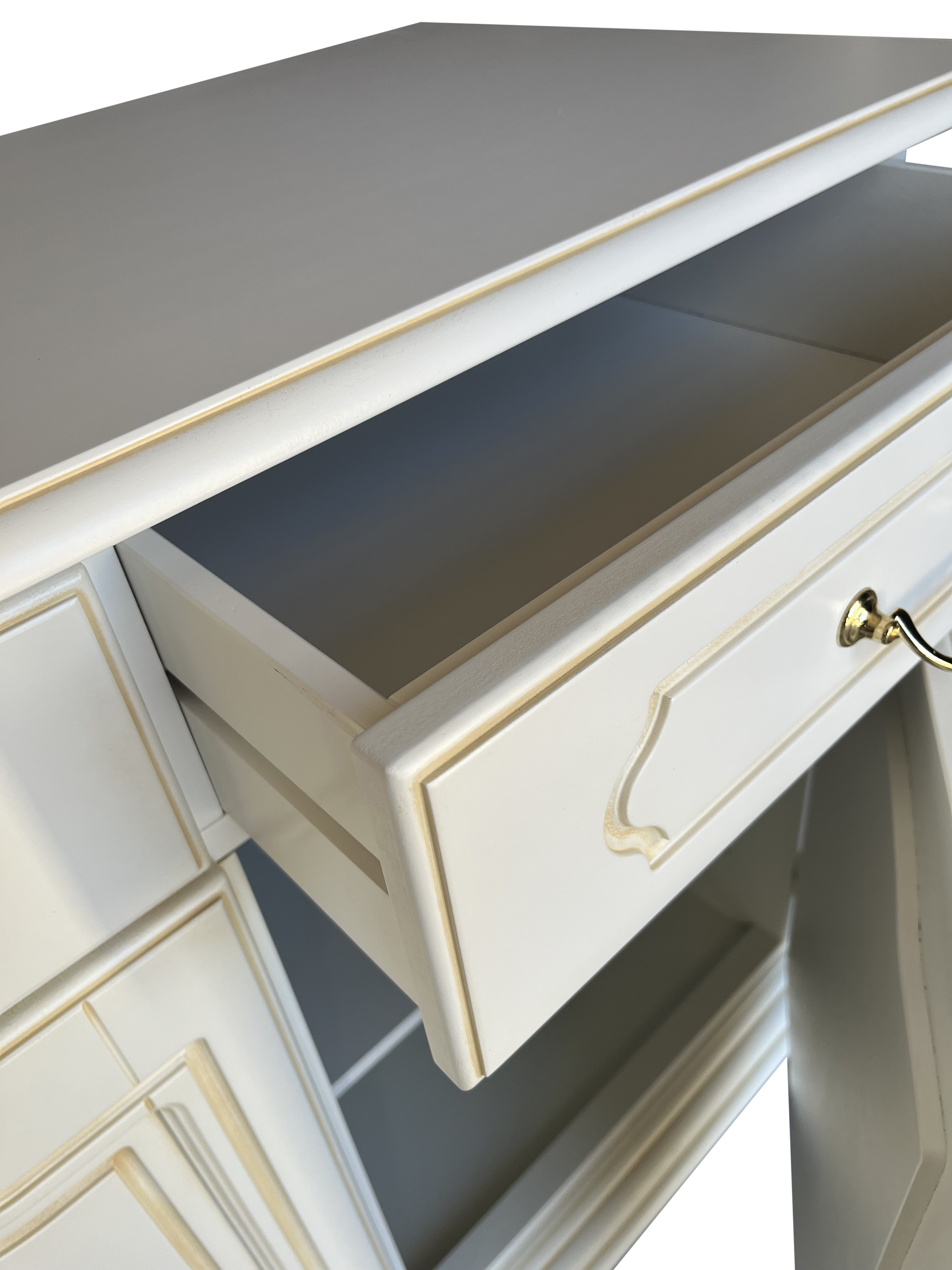Il mobile offre spazio anche per ambienti più contenuti, grazie alle 2 ante in legno e ai 2 cassetti sotto il top e presenta tanti dettagli di stile, frutto del lavoro certosino degli artigiani veneti: motivo bugnato, linea curvata, piede tondo.
