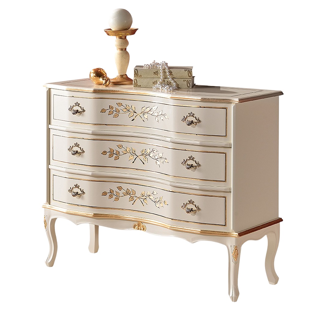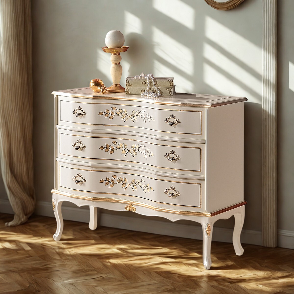 La capienza è garantita da 4 ampi cassetti, impreziositi da graziose maniglie finemente lavorate.