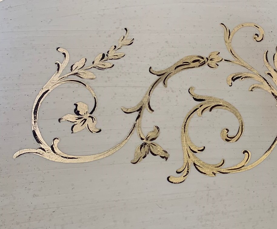 Vetrina con intaglio e decorazione in foglia