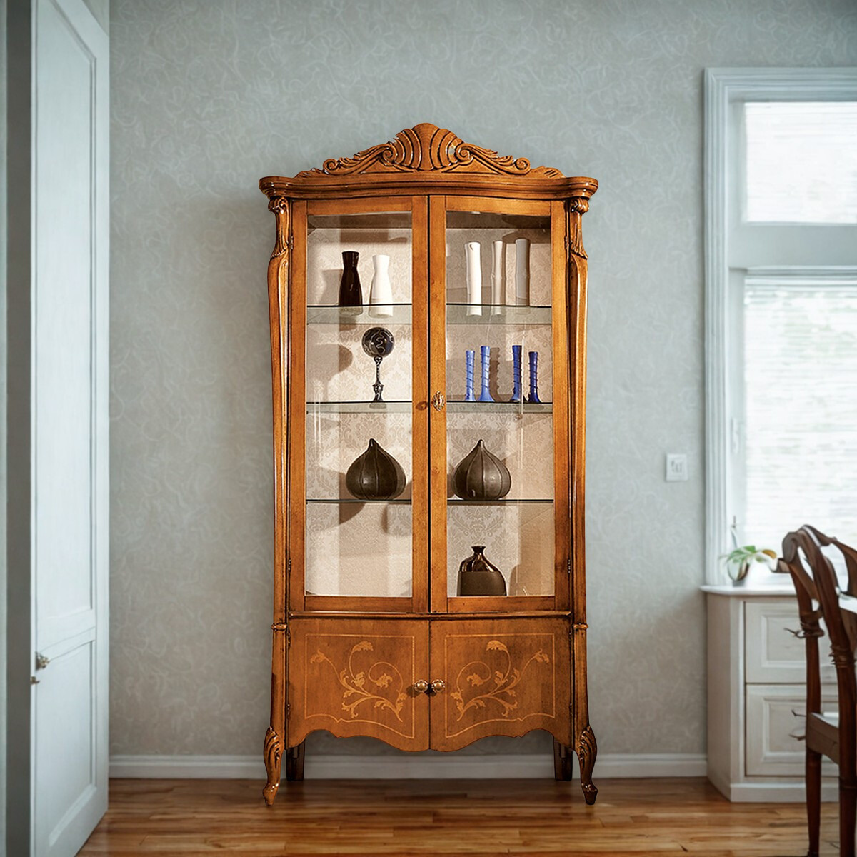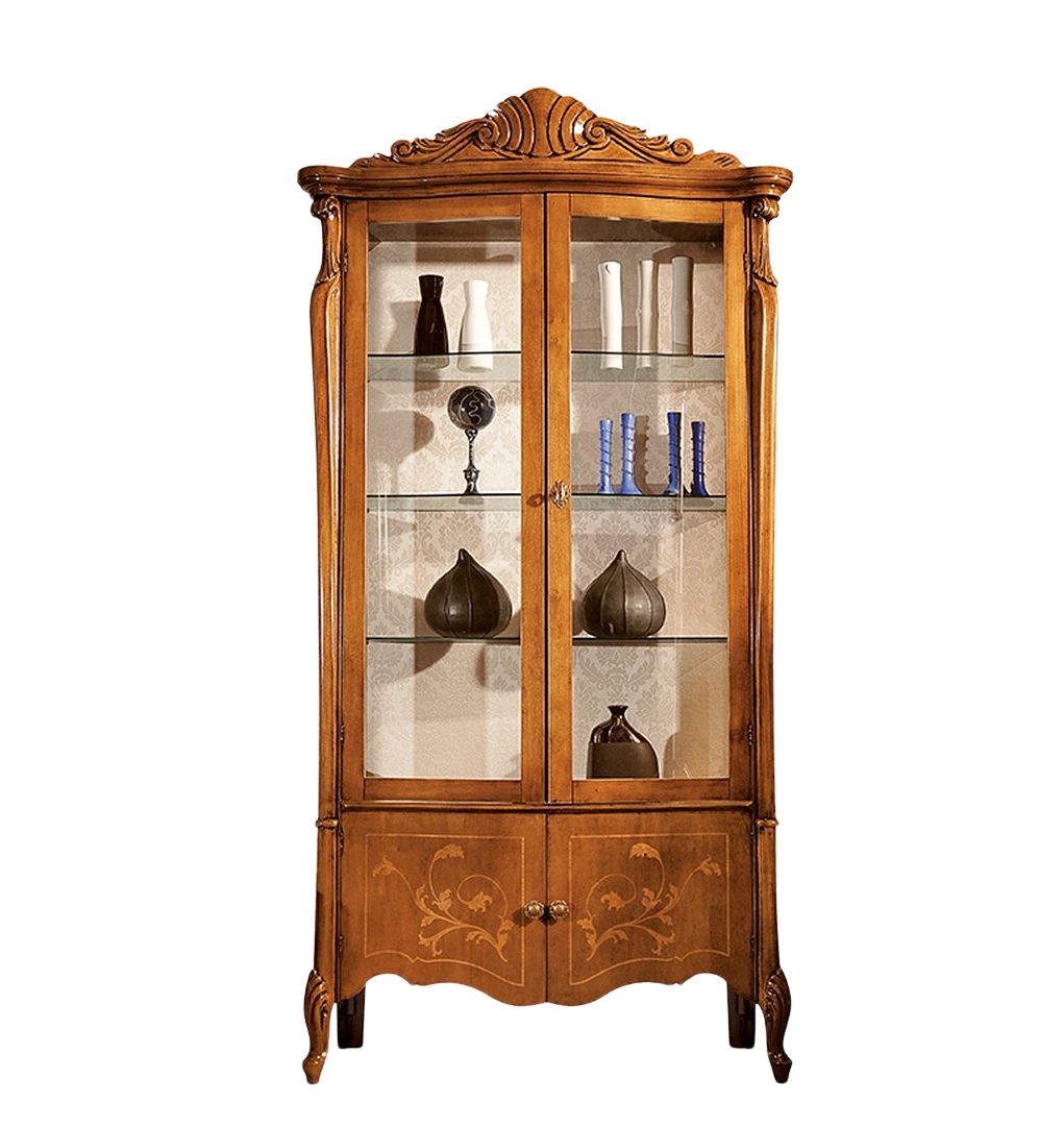 Vetrina cristalliera 4 ante con cimasa e intarsio