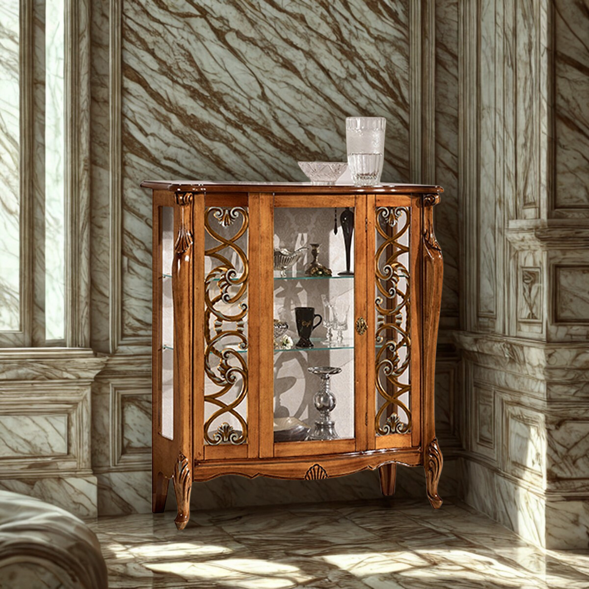 Vetrina con intaglio anta singola, Arredamento in stile classico.